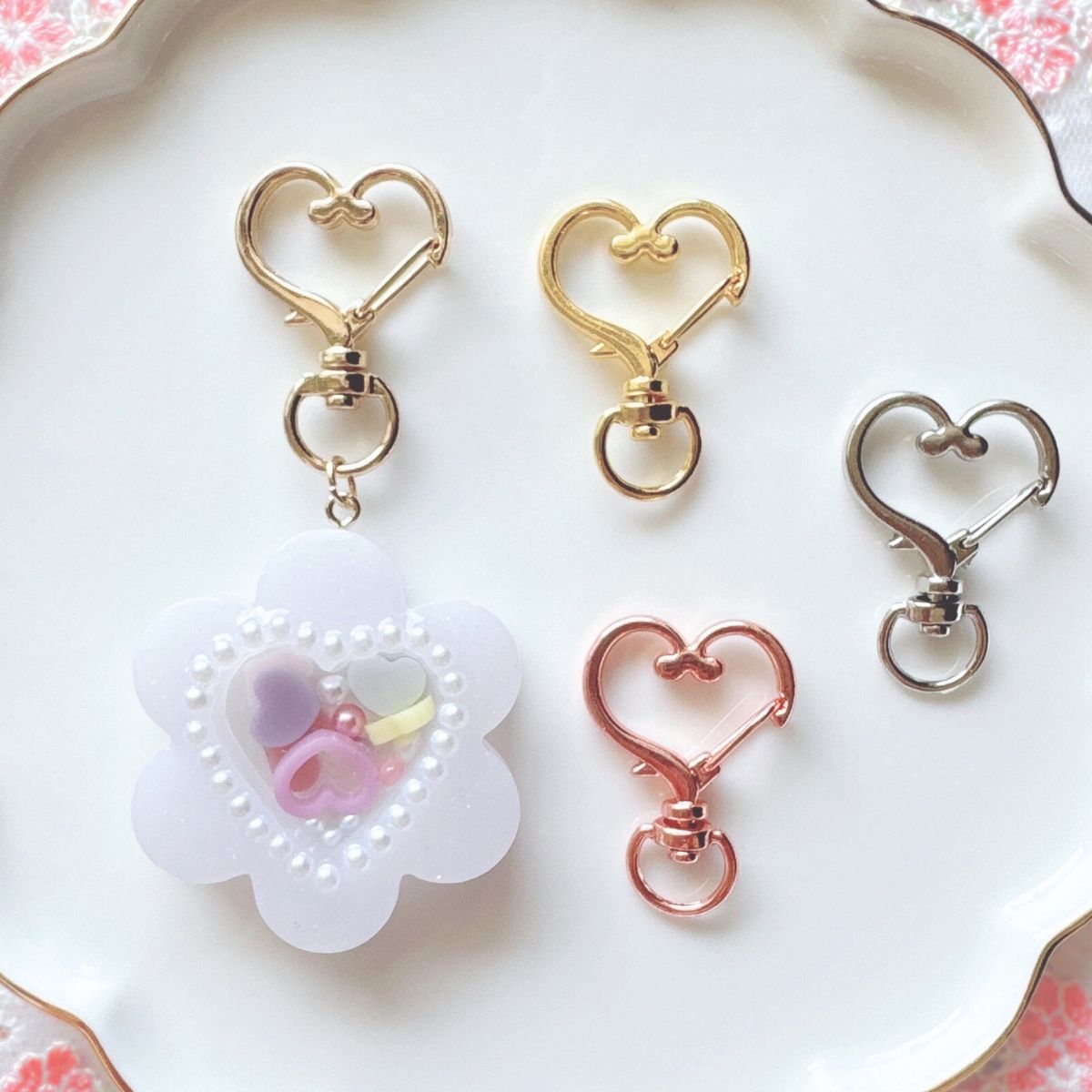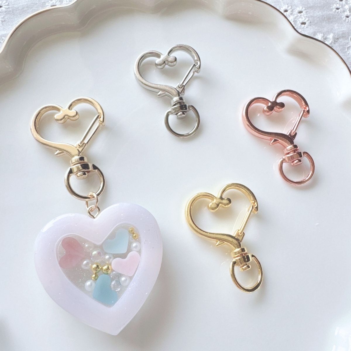 おしゃれで可愛いハート型のキーホルダーパーツ!