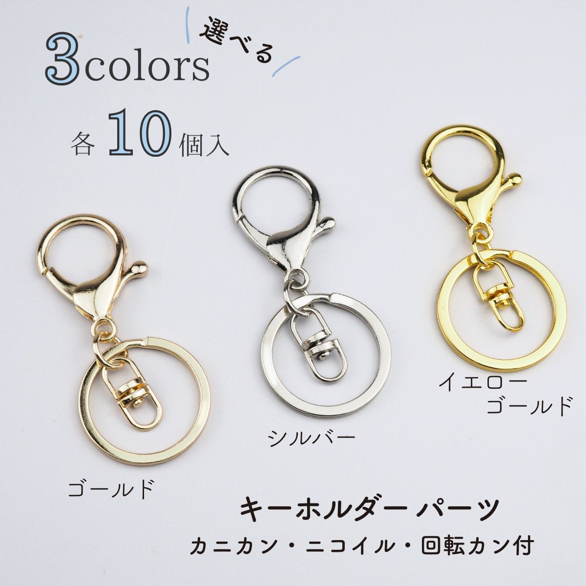 ナスカン 金具 キーホルダー キーリング 回転 フック ニコイル アクセサリーパーツ 全3色 10個セット 資材