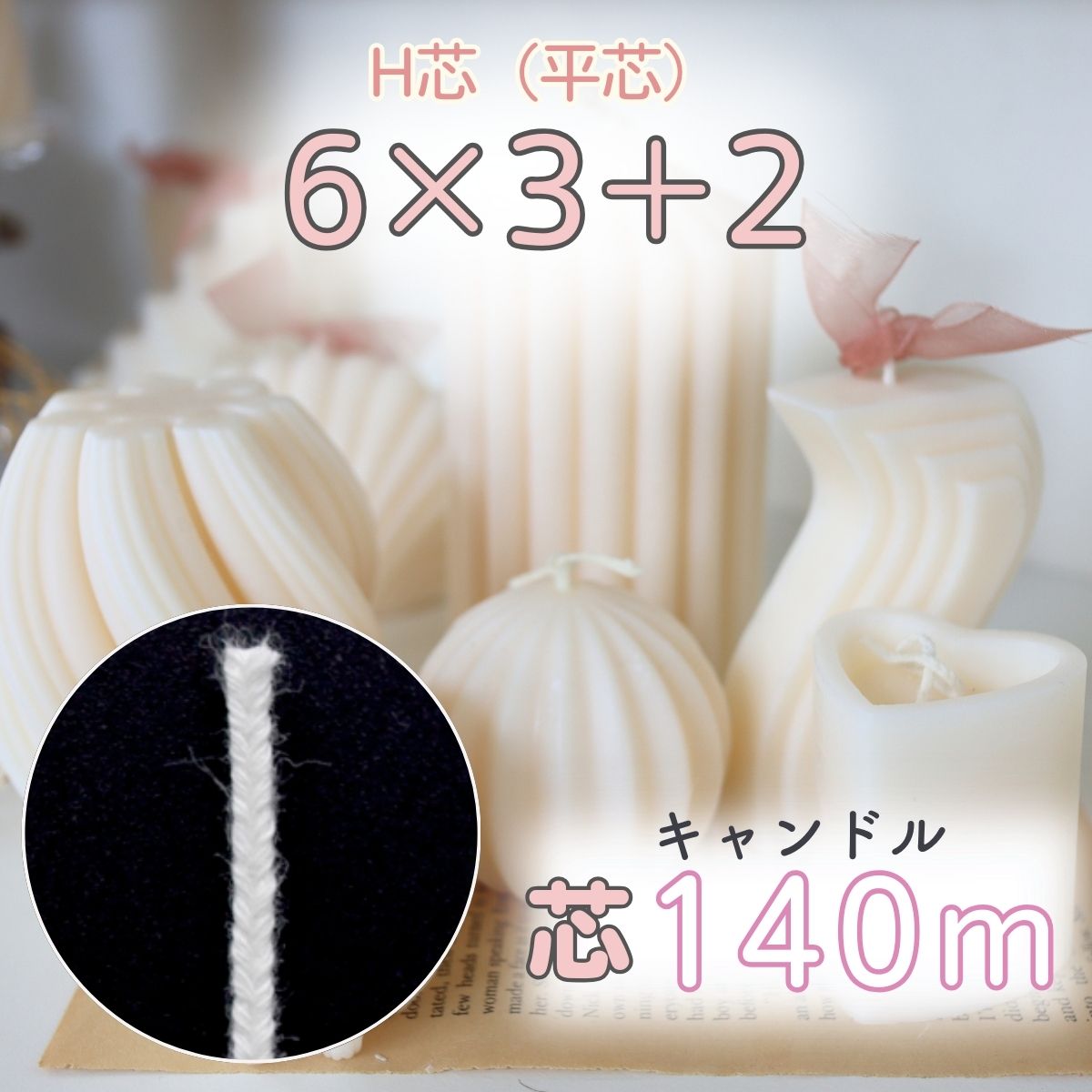 国産 キャンドル 芯 平芯 H芯 140m(平芯6×3+2)芯糸 ろうそく 綿芯 キャンドル資材
