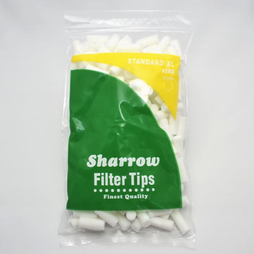 Sharrow シャロウ レギュラー ロング フィルター。 直径約8.0mm 長さ約20mm、約200個入 (ジップバッグ)手巻きタバコ用に利用します。用途に合わせて、ご利用ください。イギリスブランド。インドネシア製。