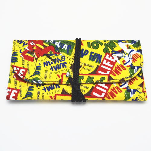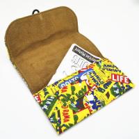 手巻きタバコ用ポーチ。ポップアートです。手巻き用タバコ、ペーパー入れ、小物を収納できます。持ち運びに便利です。綿(外側)、ピッグスェード(内側)、シャグタバコ40g、ペーパー収納可能。サイズ、収納時:15.6cm×8.8cm×1.0cm、ご利用時:24.0cm×15.6m×1.0cm、重さ:約58g、紐の長さ50cm、煙草、グッズは別途お買い求めください。