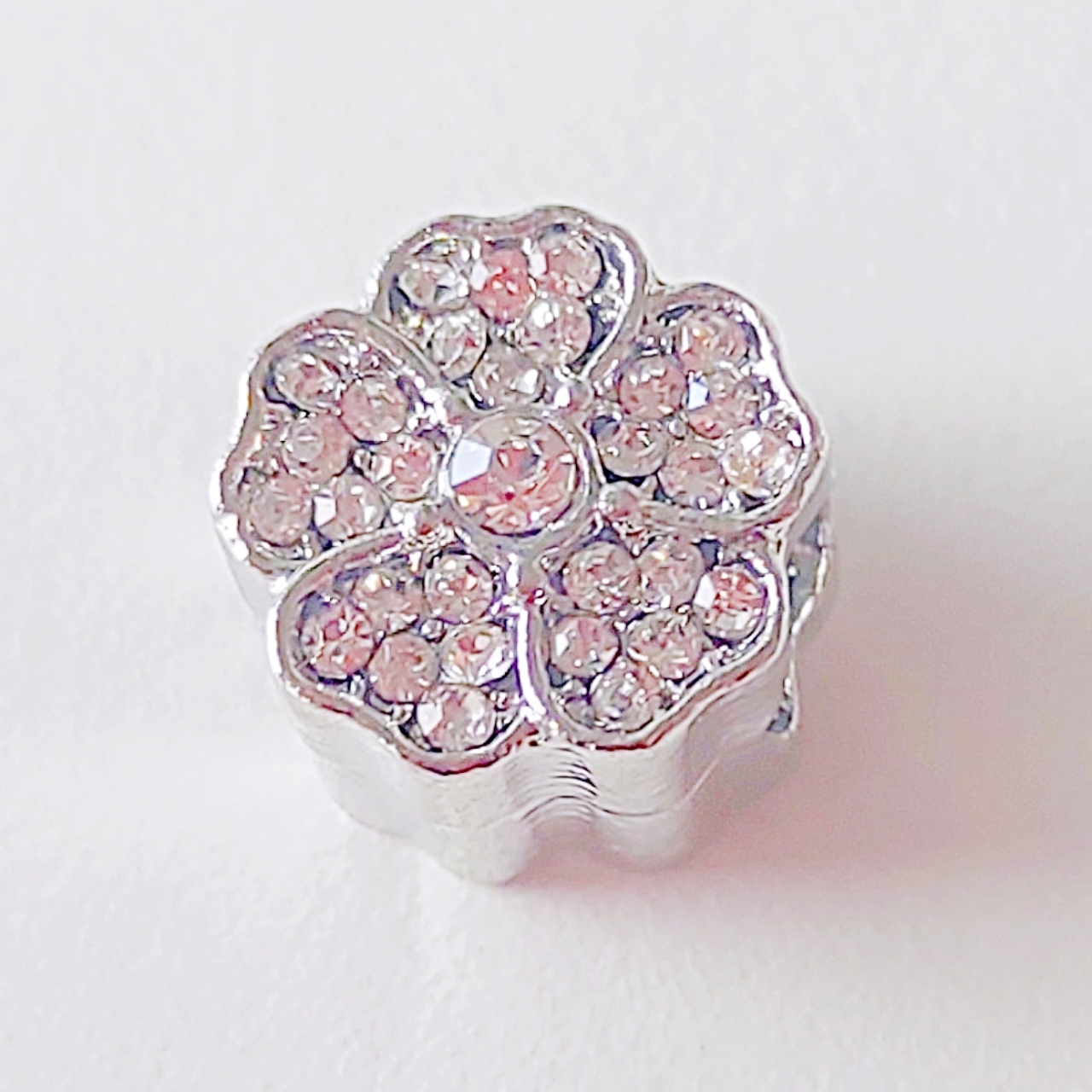 ●透明のラインストーンをはめこんだ花のモチーフのシューレースチャームです。