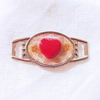●ぷっくりした赤のハートがかわいい、チャーミングな靴紐のアクセサリーです? ゴールド系のキラキラをプラスして華やかさも入れて。