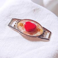 ●深紅の赤のハートをメインにあしらったシューレースチャーム。オフホワイトにベージュのドット柄プリントを背景に、金色の星形スパンコールとラメを散らしています♪