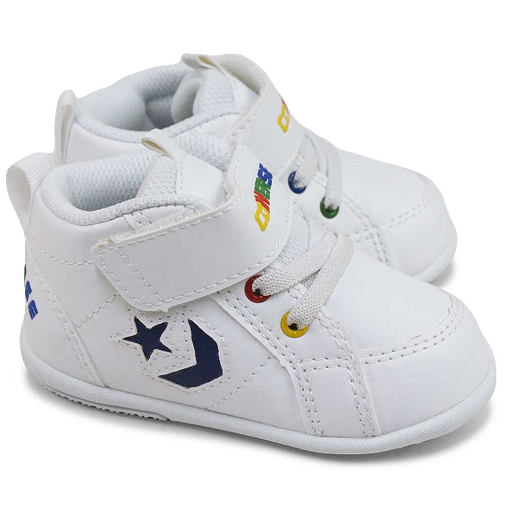 ベビー スニーカー ホワイト マルチ ピンク ブルー 合皮 ビビットカラー かわいい ポップ 贈り物 ギフト プレゼント 出産祝い 誕生日 シンプル マルチカラー