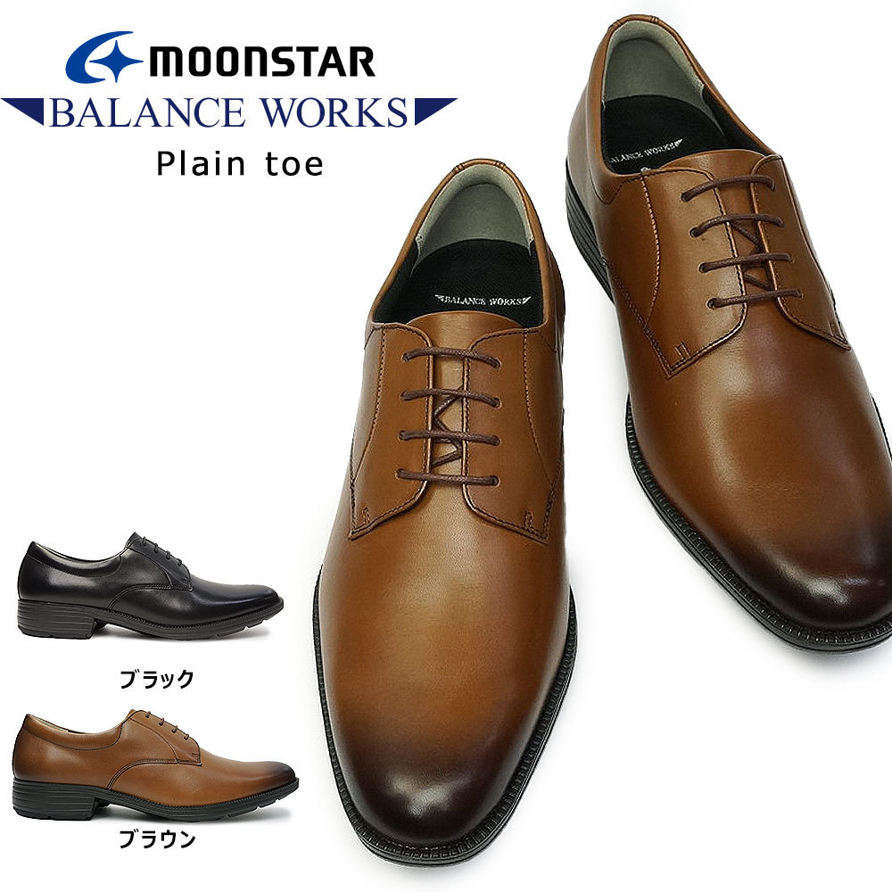 ムーンスター 靴 ビジネスシューズ BW4600 軽量 本革 メンズ レザー プレーントゥ バランスワークス 抗菌 消臭
