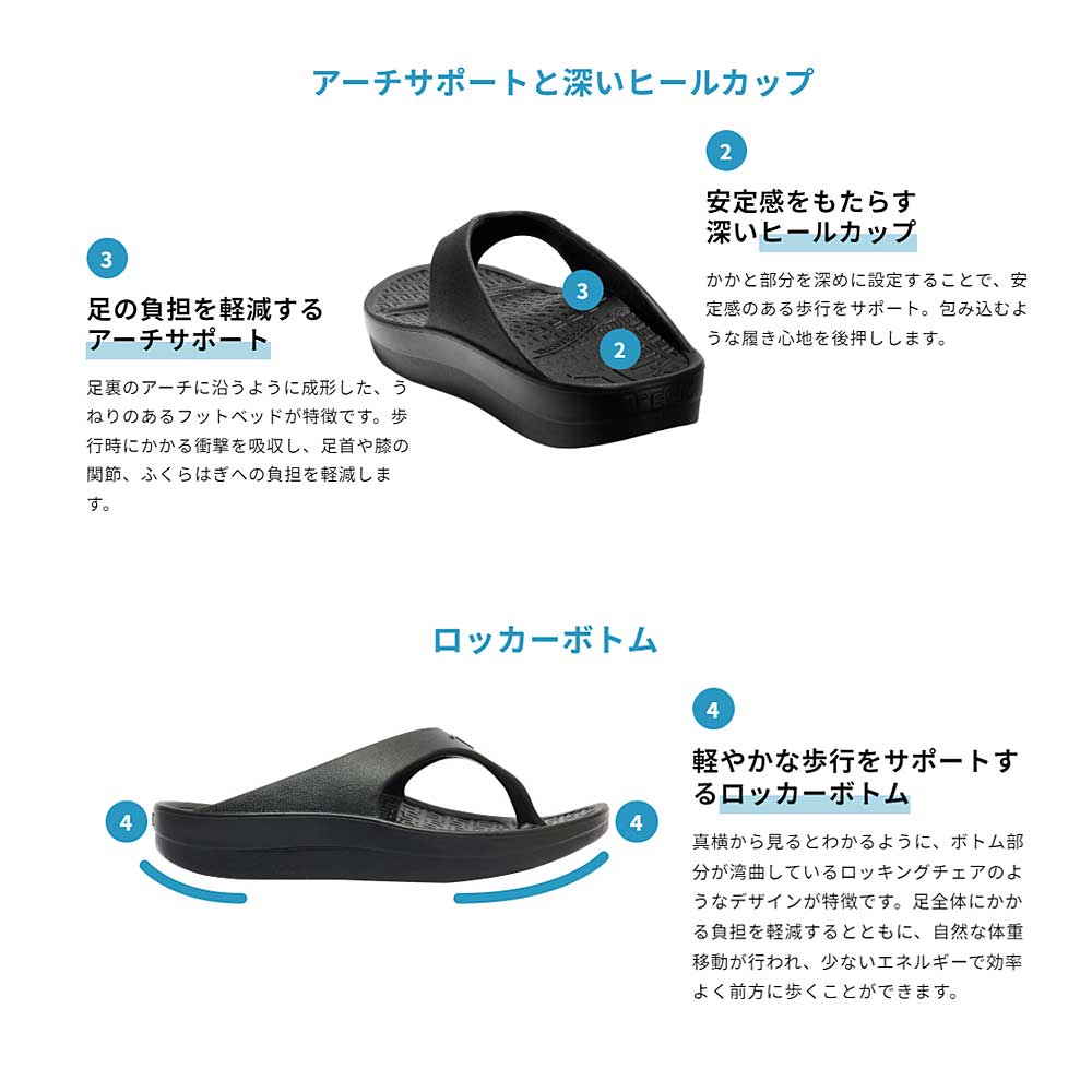 独自の「RECOVERSOFT(リカバーソフト)」インソールが、足のアーチをしっかり支えながら、衝撃を吸収してくれます。