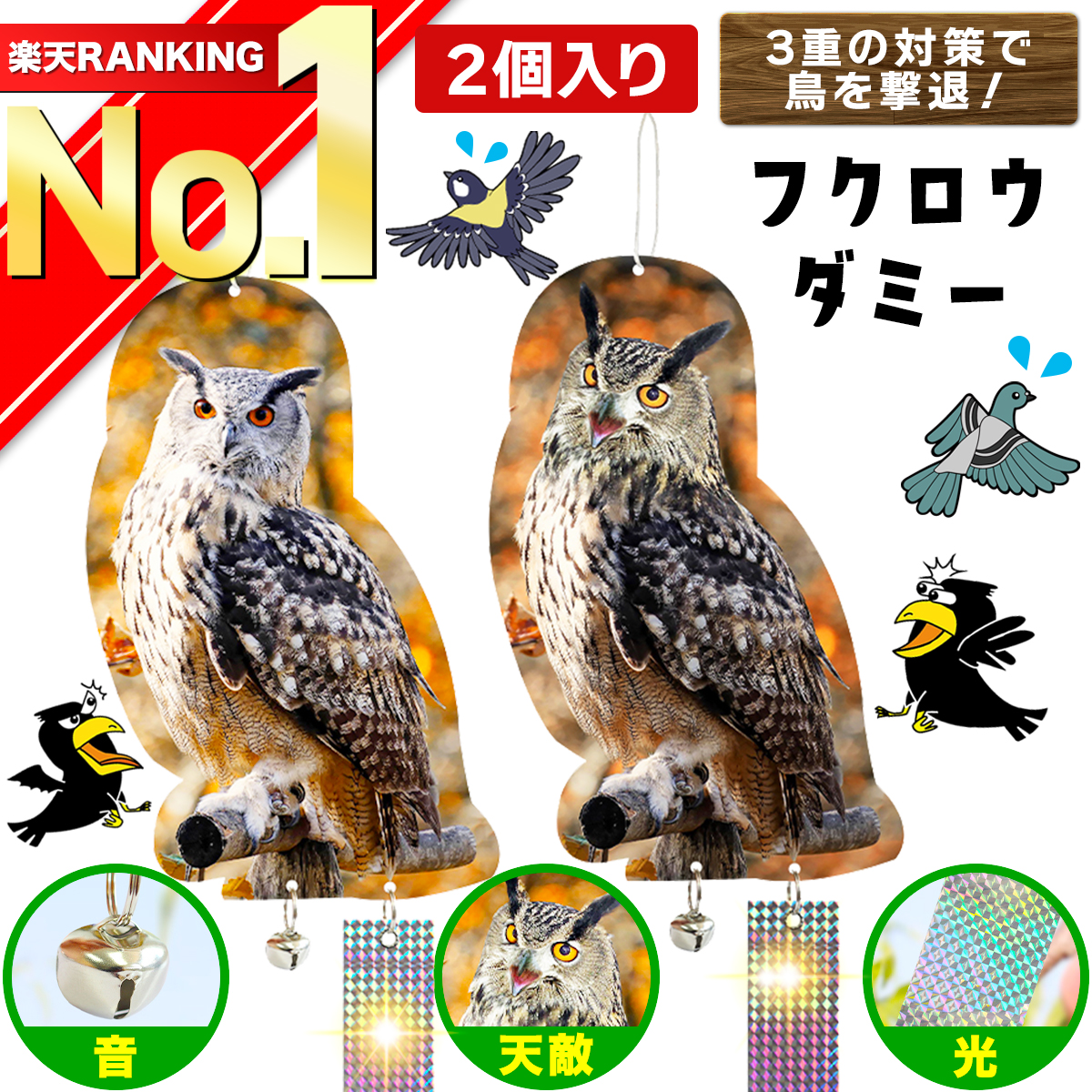 フクロウ型鳥よけ 鳩よけ カラスよけ 鳥よけ カラス 撃退 鳥避けグッズ 鳩 対策 カラス避け ダミーフクロウ 梟 鳥 鳥害 対策 鴉 ハト ツバメ 燕 【2個入り】