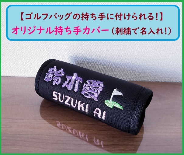 ゴルフバッグやスーツケースを持つときに便利な持ち手カバーに、刺繍で文字をお入れします♪