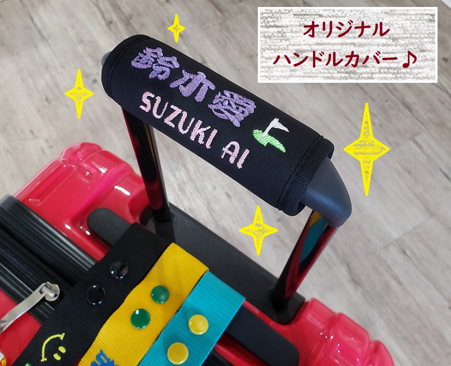 重いスーツケースやバッグを持つときに便利なハンドル(持ち手)カバーに、刺繍で文字をお入れします♪