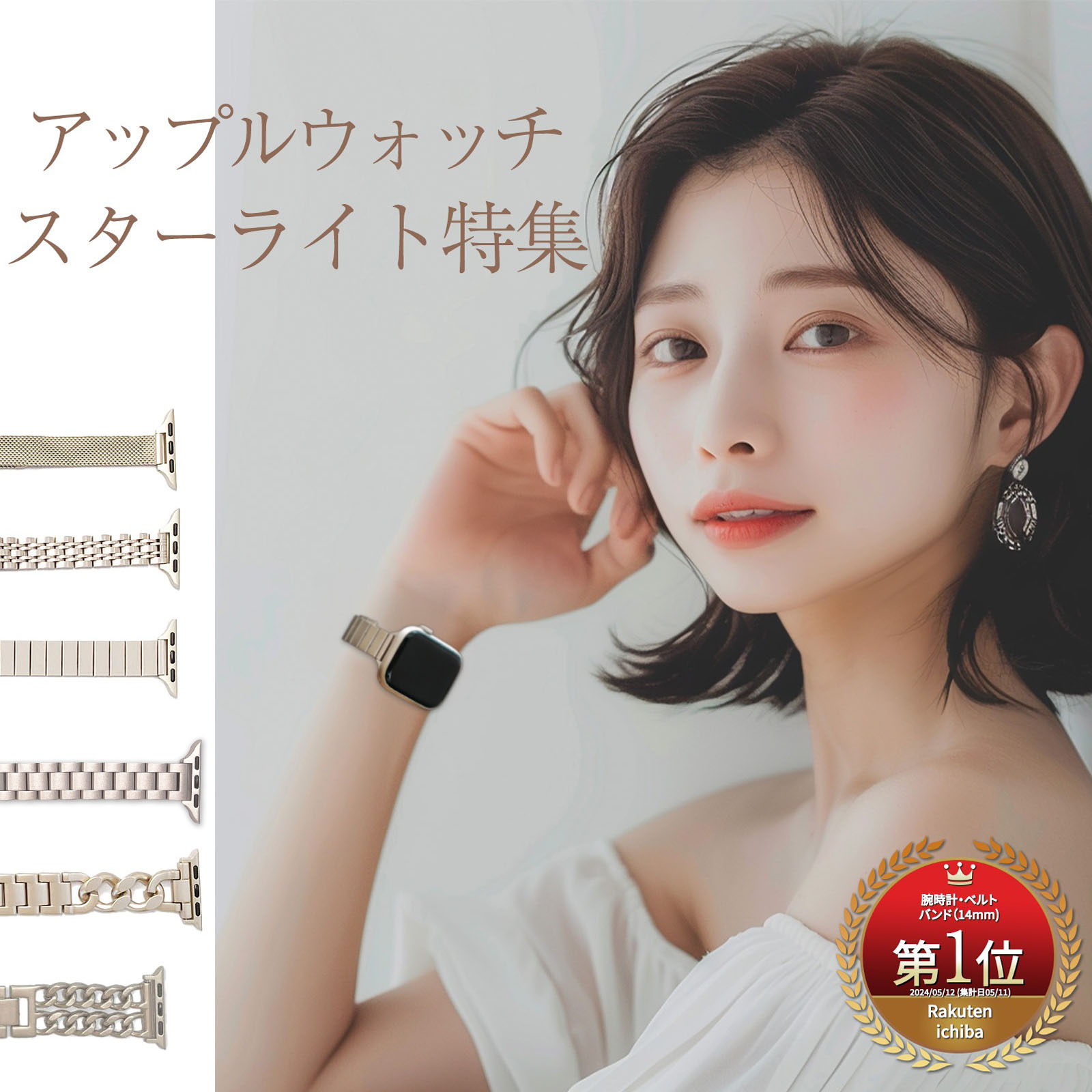 | Apple 純正 アップルウォッチ (腕時計) シリーズ Apple Watch 38mm 40mm 41mm 兼用 長さ(最長) メッシュタイプ (ベルト長さ) 188mm (バンド幅) 12mm (重量) 28g スリムタイプ (ベルト長さ) 170mm (バンド幅) 13mm (重量) 49g シングルタイプ (ベルト長さ) 182mm (バンド幅) 14mm (重量) 38g トリプルタイプ (ベルト長さ) 192mm (バンド幅) 14mm (重量) 60g チェーンタイプ (ベルト長さ) 175mm (バンド幅) 15mm (重量) 47g ダブルチェーンタイプ (ベルト長さ)160mm (バンド幅) 20mm (重量) 46g |