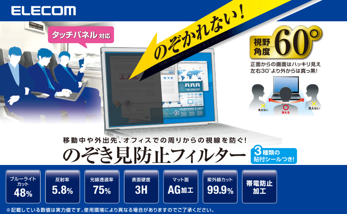 新幹線での移動中や出張先で覗き見から画面を守る!タッチパネルにも対応した、のぞき見防止フィルター “アイバリアー”