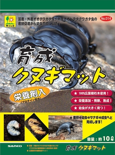 | 国産・外産オオクワ、ヒラタに最適! 広葉樹材朽木を粉砕し栄養剤「プロテイン配合」を添加し、発酵熟成させ、外産、国産オオクワガタやオオヒラタクワガタ虫の産卵から幼虫育成用として作られた本格的なクワガタ虫専用のマットです。 材質/素材:広葉樹材朽木、プロテイン 原産国または製造地:日本 諸注意:・本品はオオクワガタやオオヒラタクワガタ用飼育マットです。他の目的及び対応生体以外には使用しないで下さい。・菌糸(カビのような糸状の物)が発生する場合がありますが問題ありませんのでよく揉んでほぐしてからご使用下さい。・薬剤等使用していないのでマットに虫がつく場合があります。その場合マットを広げ天日干しにするか冷凍駆除させてからご使用下さい。・幼児の手の届かない、また直射日光の当たらない涼しいところに保管下さい。・本品が再発酵してマットに熱を持ち発酵臭がする場合はマットを別な場所で広げ冷ましてからご使用下さい。 【ペット用品】【14】 |