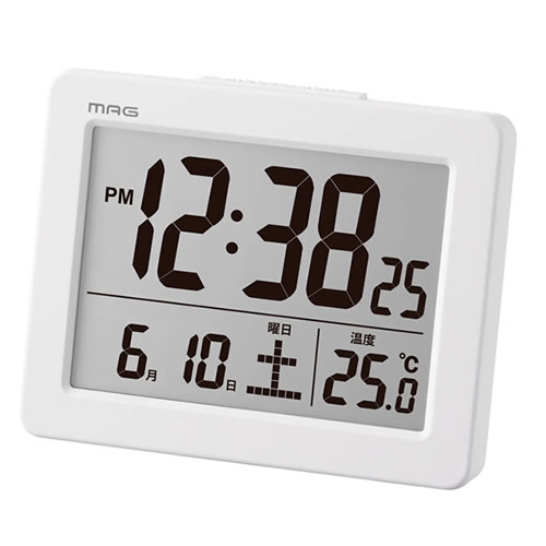 | 見やすい表示のデジタル目覚まし時計 シンプルで分かりやすく見やすい表示のデジタル目覚まし時計。 小型でコストパフォーマンスのよい非電波式。インテリアにもなじみやすいカラーリング。 ◆集約した情報が使いやすい ◆充実の目覚まし機能 ◆受信しにくい場所でも使いやすい非電波式 品番:T-779-WH-Z 色:ホワイト JAN:4952324177936 メーカー:ノア精密 商品サイズ:74mm×93mm×52mm 重量:90g 電源:単4形アルカリ乾電池2本 素材:枠:プラスチック、風防:ガラス 付属品:取扱説明書、保証書 機能:電子音アラーム、スヌーズ、スヌーズ間隔設定(5〜60分)、ライト、カレンダー表示、温度表示(-9.9〜+49.9℃)、12/24時間表示切替、電池交換お知らせ表示 【クロック】【単4形アルカリ乾電池2本】 |