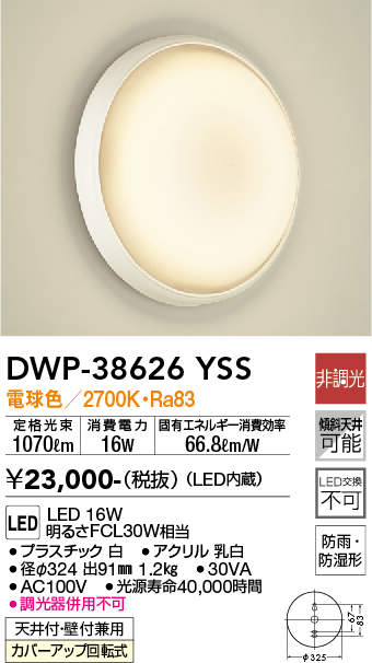 DAIKO LED浴室灯 DWP-38626YSS [DWP-38626Y]