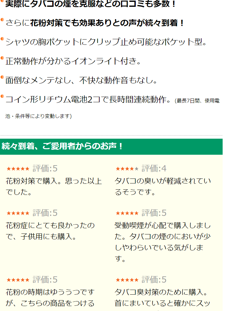 <<★花粉・PM2.5対策に。 ★首掛け式の空気清浄機として、強力な浄化パワーを発揮>>