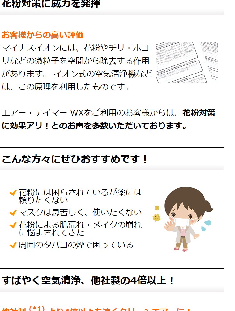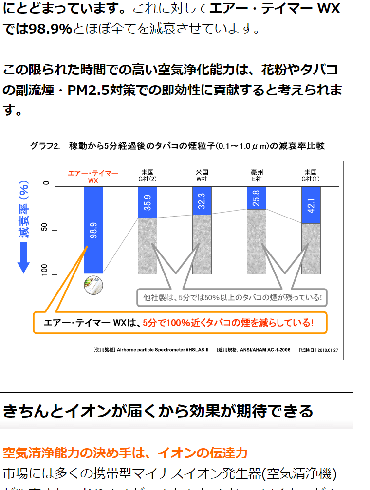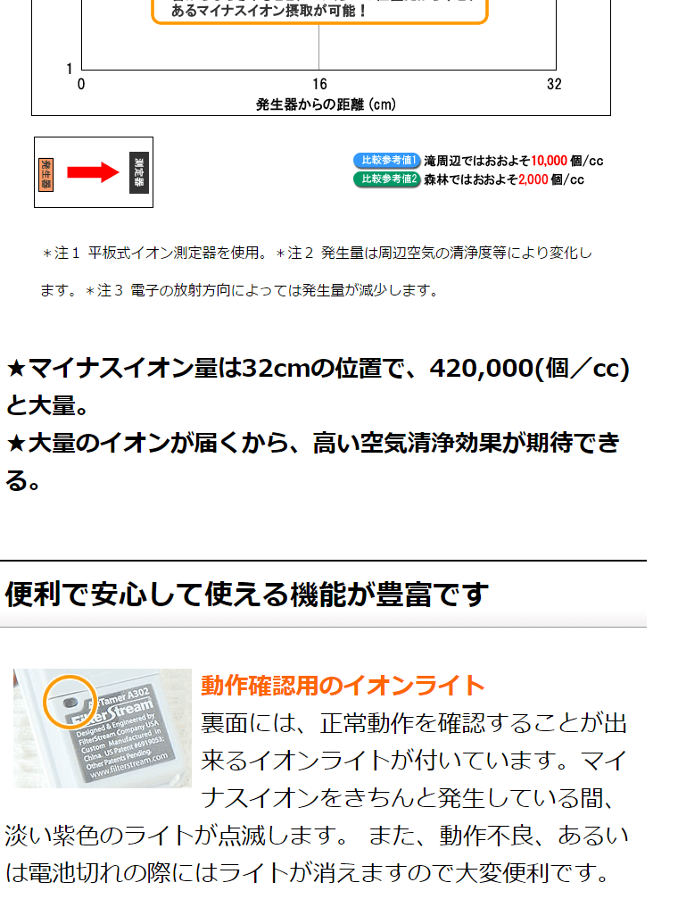 ●強力なイオンの伝達力があるから、高い効果が期待できる。(32cmの位置で約42万個のマイナスイオンを発生)