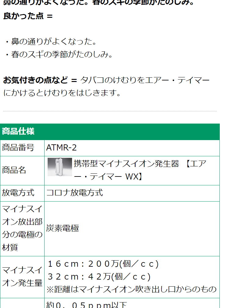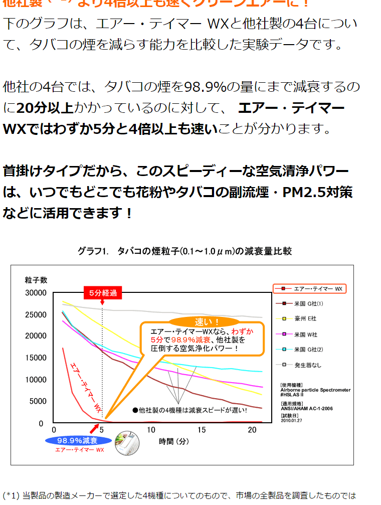 空気清浄機 小型 携帯 首掛け ネックレス型 エアー・テイマー WX マイナスイオン発生器 タバコの副流煙対策に