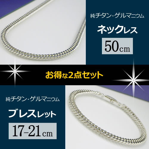 純チタン ゲルマニウム 喜平 ネックレス (50cm) ブレスレット (17-21cm) チェーン セット (ロジウムメッキ) TGK-1-SET-A 爆買