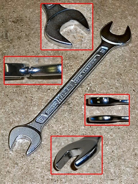 世界でもトップクラスのクオリティを誇るレンチであり、メッキの表面処理に梨地を採用しており、ミラー系のメッキは滑り易いのに対し、汗や油まみれになった手でも滑り難いのが特徴です。