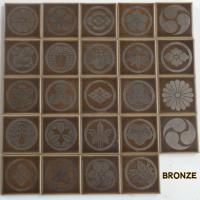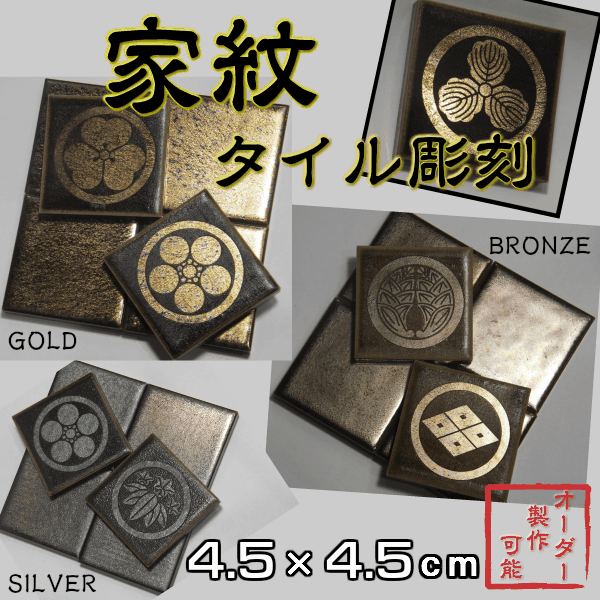 ハンドメイド 家紋 オリジナル彫刻タイル 人気の家紋24種 和風タイル 45×45mm 選べるカラー3色 ゴールド ブロンズ シルバー 表札 オブジェ