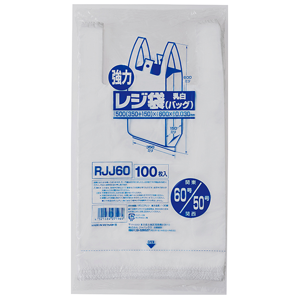 ジャパックス RJJ60 レジ袋「東日本60号/西日本50号」レギュラータイプ 乳白色 100枚 1冊