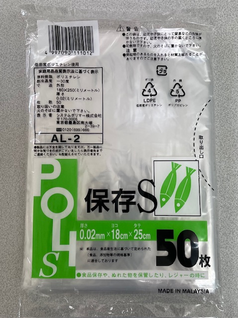 システムポリマー AL-2 保存袋 S 18cm×25cm 50枚入 1冊