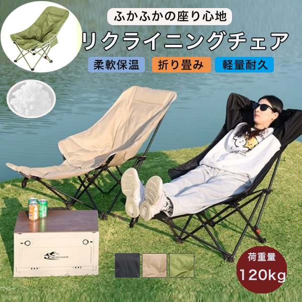 アウトドアチェア リクライニングチェア キャンプ椅子 折りたたみ 足置き付き 耐荷重120kg 調節可能 お釣り 登山 リラックス 収納バッグ付き 送料無料 爆買