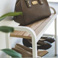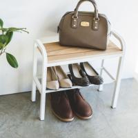 木の座面が上品なベンチシューズラック。
