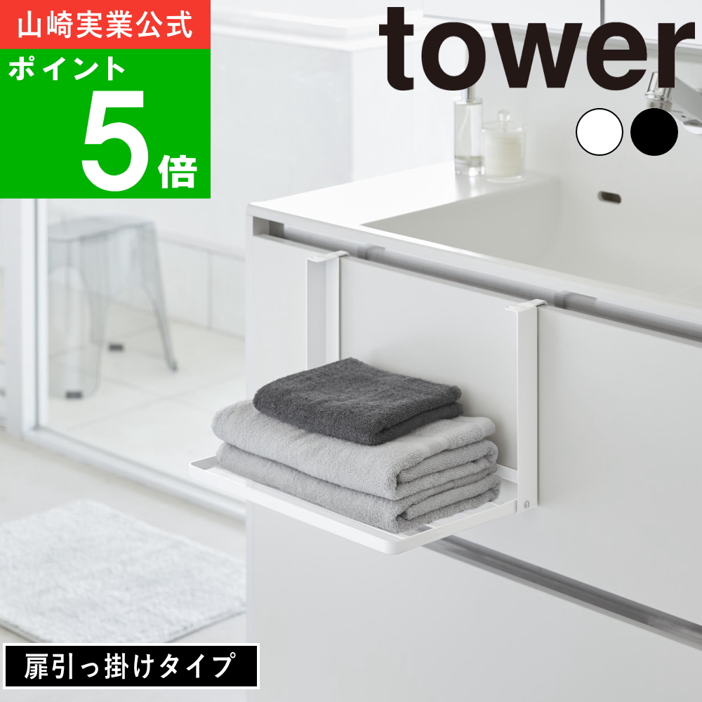 ( 引っ掛け 折り畳み棚 タワー ) tower 公式 通販 サイト タオル タオルラック 着替え置き場 棚 洗面所 扉 ランドリー 一時置き 寝巻 パジャマ 収納 バスタオル