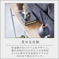 圧迫感のないスリムなデザイン。奥行き約20.5cmのスリムな形状。2〜3人掛けの大き目のソファと合わせて使えるラック。