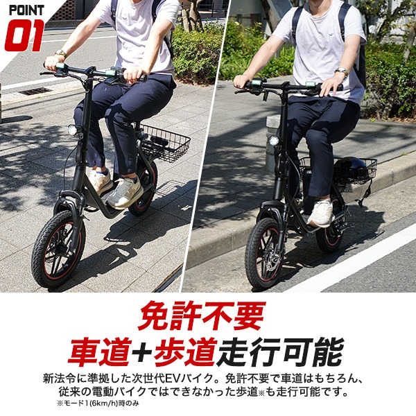 新法令に準拠した次世代EVバイク。 免許不要で車道はもちろん、