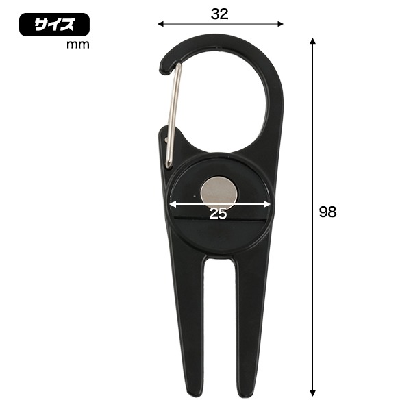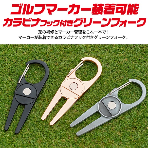 ゴルフ グリーンフォーク カラビナフック付 ゴルフフォーク マグネット付 グリーンマーカー 芝 リペア ラウンド用品 ゴルフ用品 グッズ