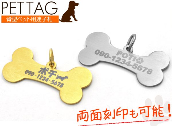 ペット用迷子札 骨型 犬 猫 名入れ 名札 ネームタグ ステンレス製 オリジナル刻印 ドッグタグ 両面OK ネームプレート