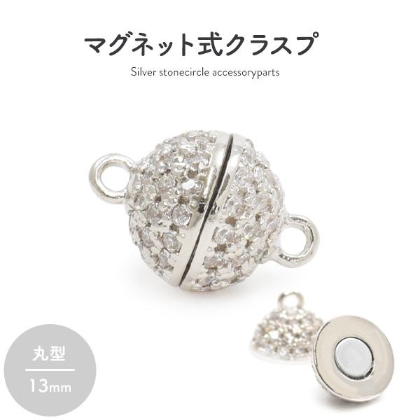 マグネット式クラスプ ラインストーン付き シルバー 丸型 13mm