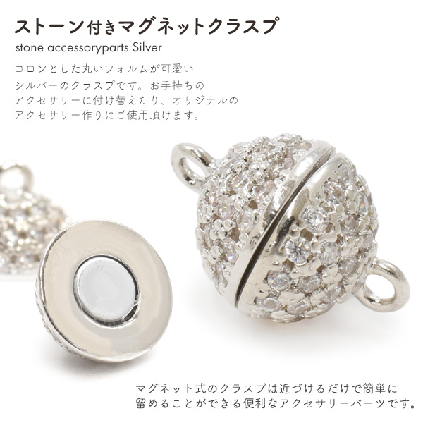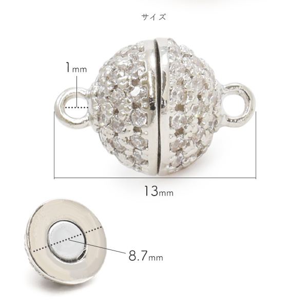 マグネットクラスプ 留め金具 ボール 13mm シルバー ラインストーン ネックレス 磁石 留め具 アクセサリーパーツ ハンドメイド 材料