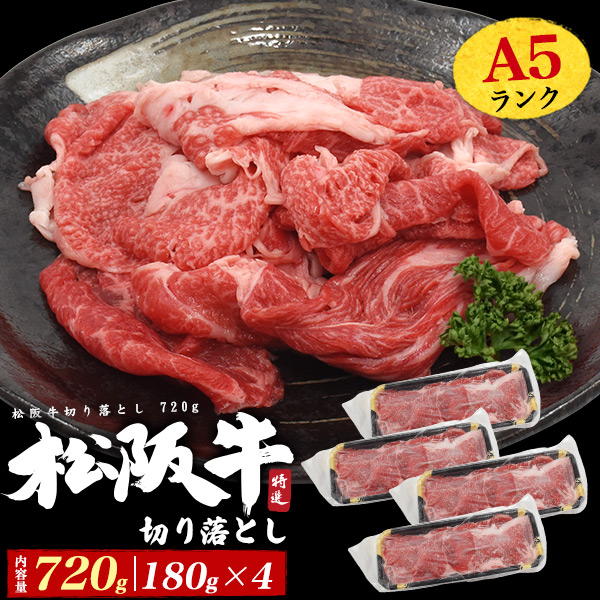 最高級A5ランク松阪牛切り落とし 720g(180g×4)