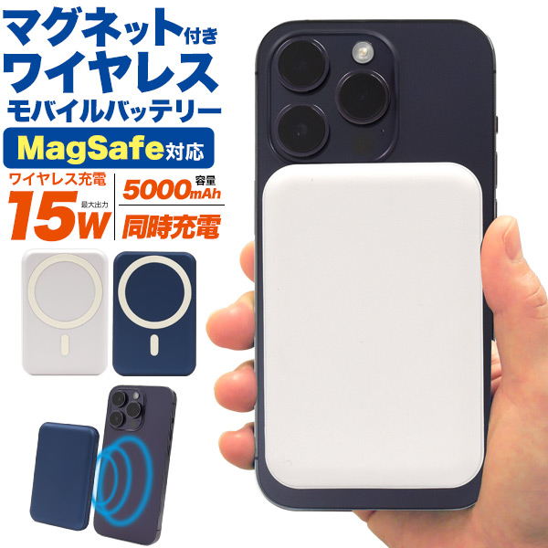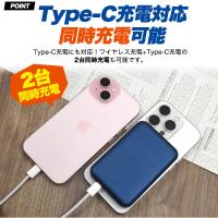 モバイルバッテリー iPhone Magsafe対応 マグネット ワイヤレス 薄型 小型 軽量 白 ネイビー 5000mAh Type-C 急速充電 スマホ充電器