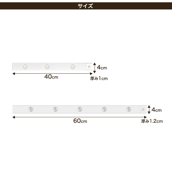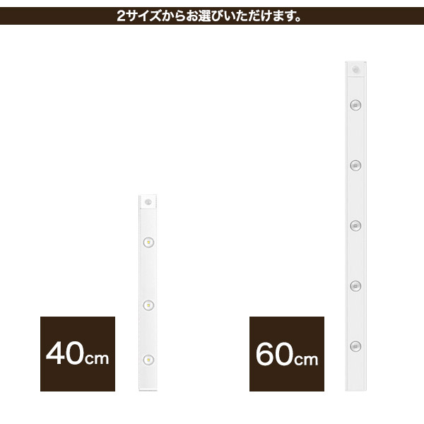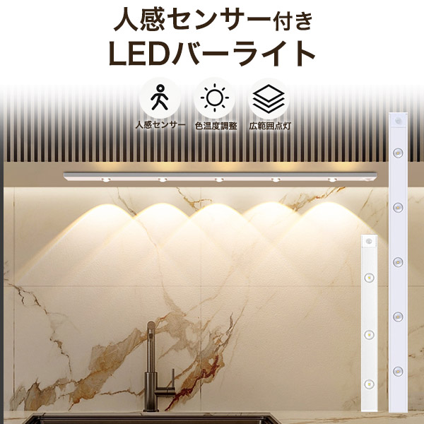 LED バーライト スティック 人感センサー 40cm 60cm 調光 間接照明 調色 白色 昼光色 電球色 壁面 USB 充電式 薄型 ラック 棚 玄関 フットライト