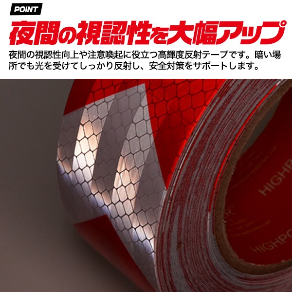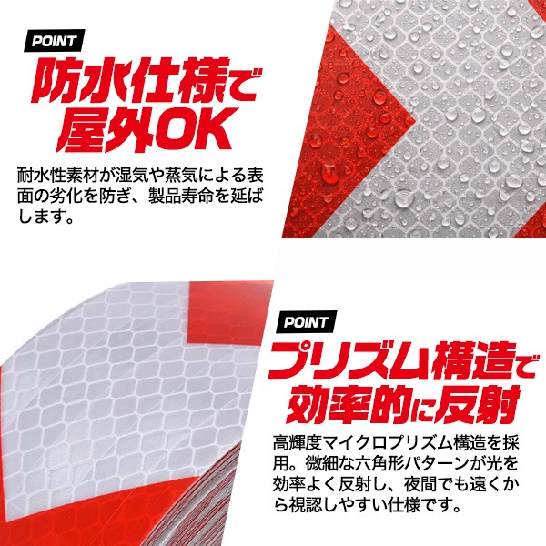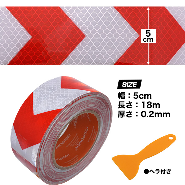 反射テープ 高輝度 幅5cm 長さ18m 赤×白 矢印 防水 マイクロプリズム 屋外 駐車場 工事現場 倉庫 車 自転車 バイク 夜間 安全対策