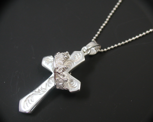 ネックレストップ クロス&クラウン メンズ シルバー925 十字架 ペンダントヘッド アクセサリー