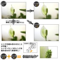 上図のようにレンズを装着すると最短撮影距離が短くなり、より近くで花やアクセサリーなどを撮影できます。レンズがない状態で無理に近づいて撮影してもピントがあわずキレイな写真は撮影できません。 | |