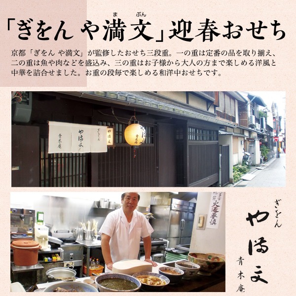 京都「ぎをん や満文」が監修したおせち三段重。