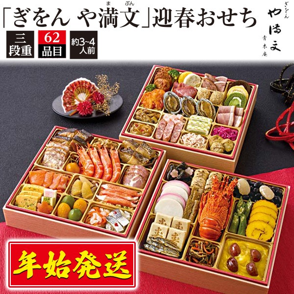 セールおせち 2026 和洋中 おせち料理 ぎをんや満文 迎春おせち 三段重 3人前 4人前 62品目 冷凍 訳あり 残り福