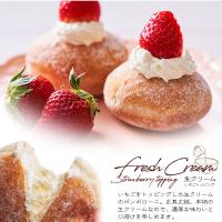 発酵ドーナツ生地を揚げて、クリームをたっぷり詰め、仕上げに砂糖をまぶしたスイーツです。