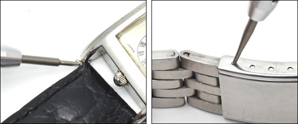 どちらもバネ棒を押して、ベルトを取り外すために使われます。