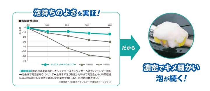 ●濃密でキメ細かな泡が洗浄時の洗車キズを防ぎます。