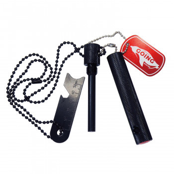 | 1946年創業の老舗メーカー「ペンギンライター」のアウトドアツールアイテムです。信頼できるパフォーマンスをお届け致します。燃料いらずの着火ツール。どんな状況になってもこれがあれば火を起こせる究極のアウトドアツール。削りプレートには50mmまで測れるスケールと栓抜きも付いています。ボールチェーンでぶら下げることも可能です。 |