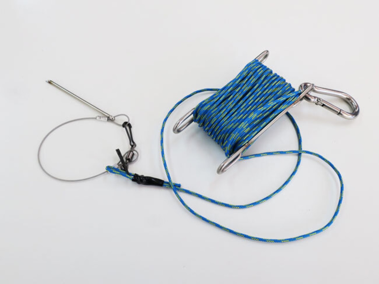 従来のストリンガーは魚が頭下がりにステイし、時間が経過するとともに衰弱してお腹を見せ、最悪は魚を死なせてしまうこともあります。 JAILをウェーディングで使うとよく分かるのですが、時間が経つとともに魚の体力が回復してその魚に引っ張られて驚くほど! 魚の体力を回復させるぐらい自然な状態でつなぐことができるストリンガーです。 軽さだけでなく、ぶら下げ耐荷重60kgと強固です。