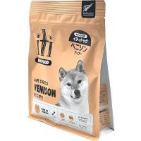 原材料:ベニソン、ベニソン内臓、ココナッツグリセリン、亜麻仁、緑イ貝、シーソルト、ベニソン骨、ミックストコフェロール(酸化防止剤)、アミノ酸類(タウリン)、ビタミン類(塩化コリン、E、B1、A、B3、B5、B2、B6、D、ビオチン、B12、葉酸)、ミネラル類(リン酸二カリウム、炭酸カルシウム、鉄、亜鉛、セレン、銅、マンガン、ヨウ素)